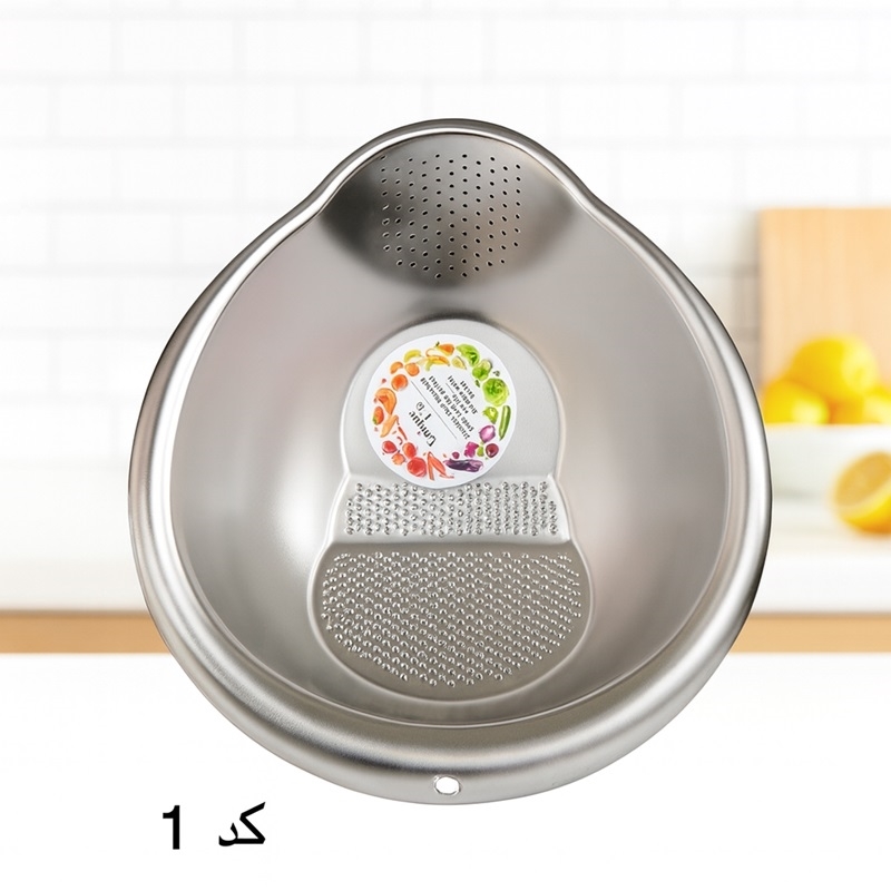 آبکِش برنج تمام استیل مقاوم، زیبا و کاربردی برای شستوشوی سریع و آسان برنج، سبزیجات و میوهها. طراحی ارگونومیک با سوراخهای یکنواخت و جنس ضدزنگ، مناسب هر آشپزخانهای.